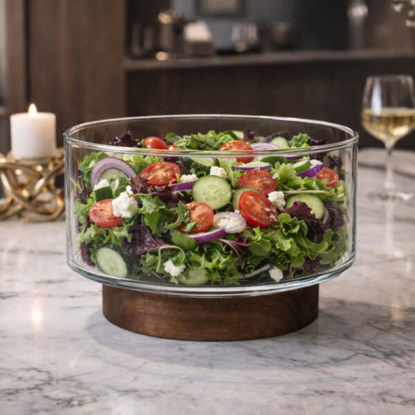 Γυάλινο μπόλ με Ξύλινη Βάση