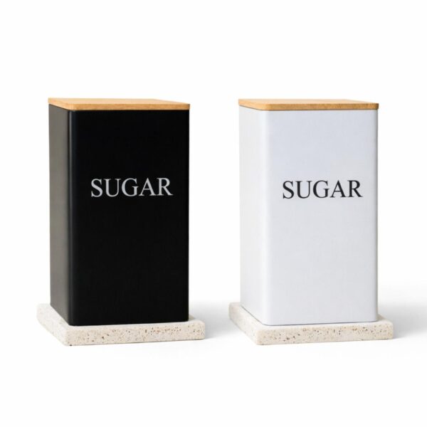 Μεταλλικό Δοχείο Αποθήκευσης Ζάχαρη με Καπάκι Μπαμπού