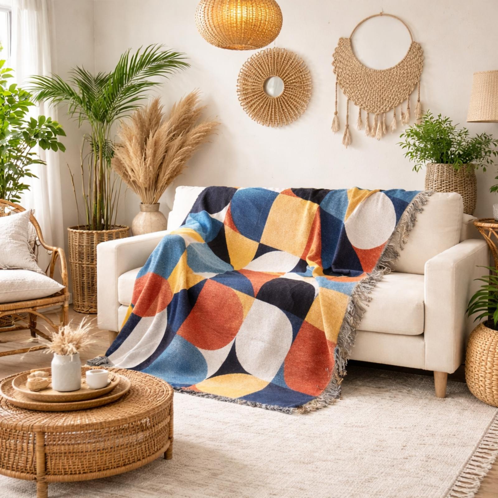 Είναι μια ιδανική λύση για όσους θέλουν να ανανεώσουν το σαλόνι τους χωρίς να αλλάξουν έπιπλα, προσθέτοντας boho χαρακτήρα με ελάχιστο κόστος.