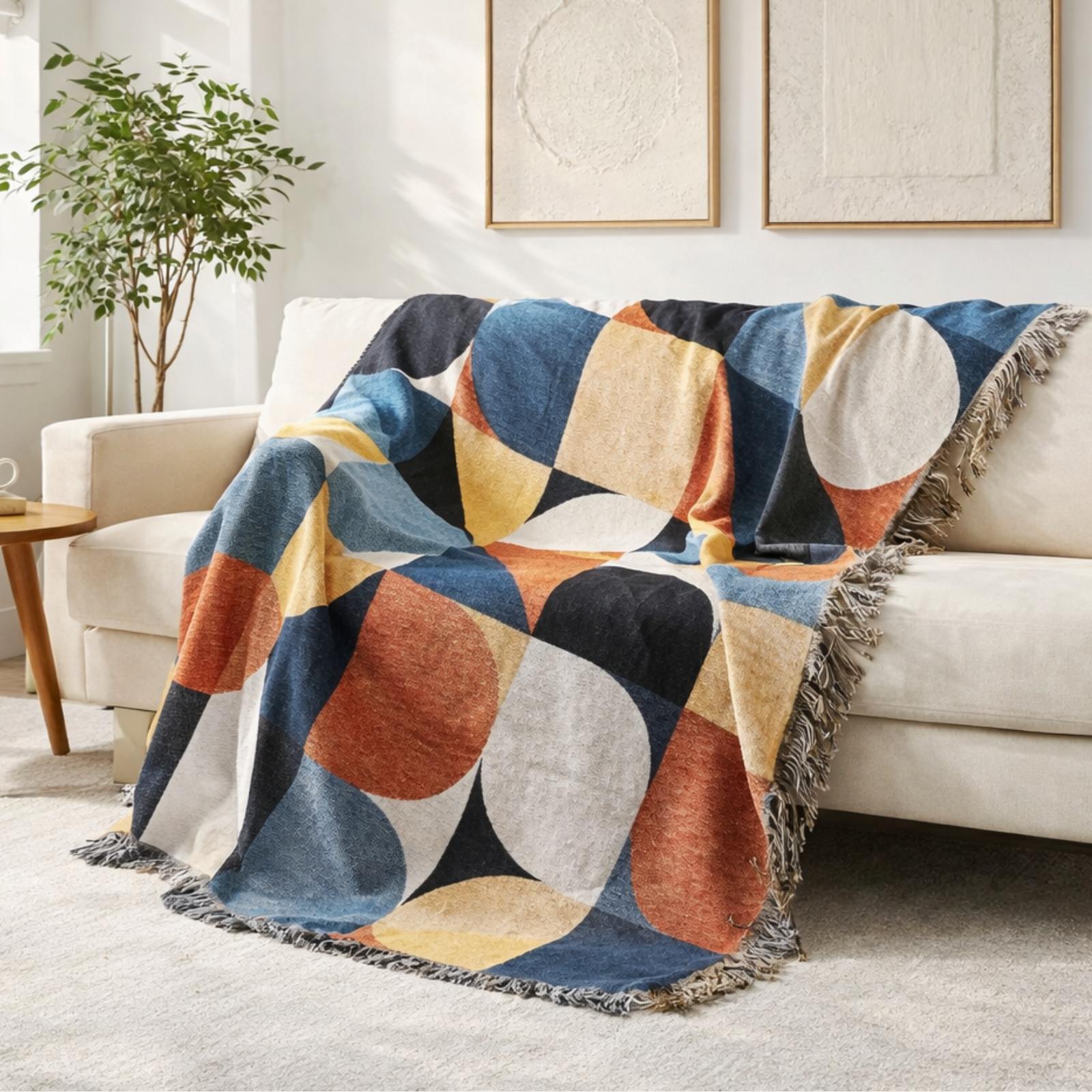 Boho GEO Art Κάλυμμα Σαλονιού – Βαμβακερό, Διακοσμητικό & Προστατευτικό