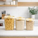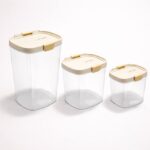 Αναβαθμίστε την οργάνωση της κουζίνας σας με το δοχείο αποθήκευσης τροφίμων από PET πλαστικό, σχεδιασμένο για να συνδυάζει αισθητική, πρακτικότητα και ασφάλεια τροφίμων. Διατίθεται σε τρία διαφορετικά μεγέθη, ώστε να καλύπτει κάθε ανάγκη αποθήκευσης – από ζυμαρικά και ρύζι έως δημητριακά, όσπρια και ξηρούς καρπούς. Ο σύγχρονος σχεδιασμός του ταιριάζει απόλυτα σε κάθε μοντέρνα κουζίνα, προσφέροντας καθαρότητα, τάξη και εύκολη πρόσβαση στα τρόφιμά σας.