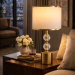 Επιτραπέζιο Φωτιστικό Χρυσό με Γυάλινες Λεπτομέρειες ,μεταλλικό – Κομψότητα & Στυλ για Κάθε Χώρο