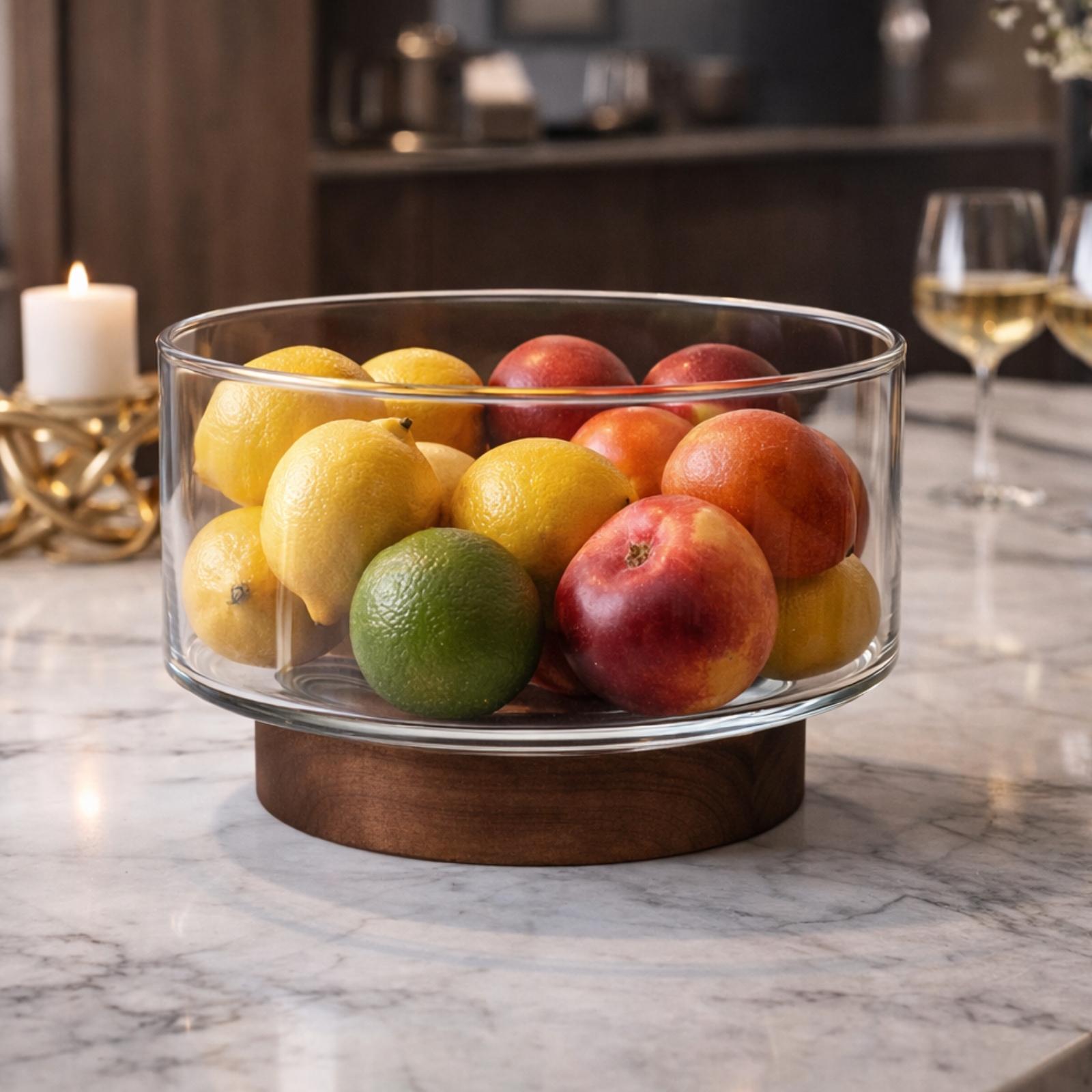 Γυάλινο μπόλ με Ξύλινη Βάση