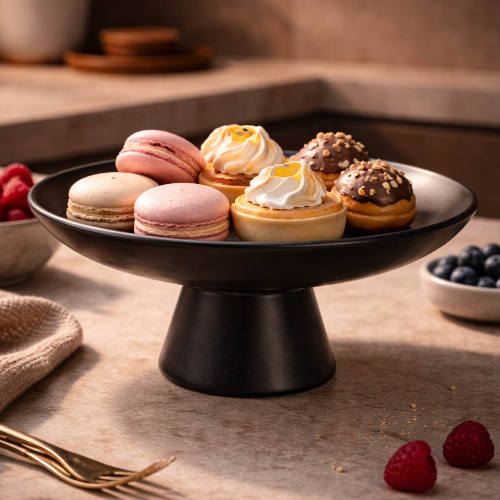 Αναδείξτε τα γλυκά και τις δημιουργίες σας με μια premium κεραμική πιατέλα ζαχαροπλαστικής. Minimal σχεδιασμός, κομψή βάση και ματ υφή που προσδίδουν πολυτέλεια σε κάθε τραπέζι ή coffee corner.