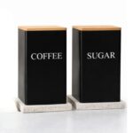 Μεταλλικό Δοχείο Αποθήκευσης Ζάχαρη με Καπάκι Μπαμπού