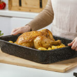 Η αντικολλητική επίστρωση τύπου stone εξασφαλίζει ομοιόμορφη κατανομή της θερμότητας και άριστο αποτέλεσμα στο ψήσιμο. Τα φαγητά δεν κολλάνε, ψήνονται σωστά και διατηρούν τα υγρά και τη γεύση τους. Παράλληλα, απαιτείται ελάχιστο ή και καθόλου λάδι, καθιστώντας το ταψί ιδανικό για πιο υγιεινή μαγειρική.