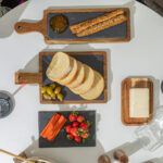 Purchase & earn 4 points!Πλατώ σερβιρίσματος σχιστόλιθου με ξύλινη βάση ακακία 28x17cm – Φυσική αισθητική & premium παρουσίαση