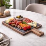 Το πλατώ σερβιρίσματος σχιστόλιθου με ξύλινη βάση ακακία 28x17cm αποτελεί μια κομψή και πρακτική επιλογή για εντυπωσιακή παρουσίαση φαγητών και ορεκτικών. Ο συνδυασμός φυσικού σχιστόλιθου με ζεστό ξύλο ακακίας δημιουργεί μια ισορροπημένη αισθητική που ταιριάζει τόσο σε μοντέρνους όσο και σε rustic χώρους.