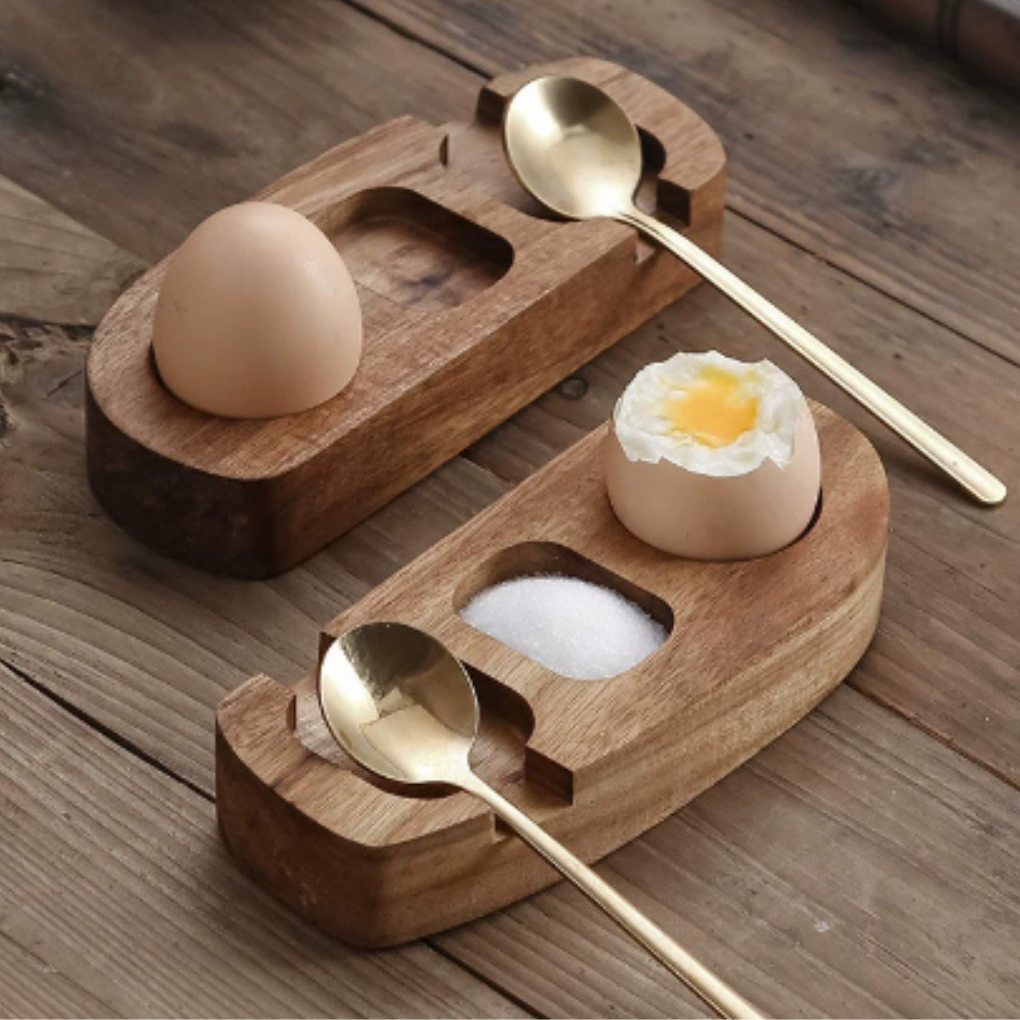 Θήκη Αυγoυ από Ξύλο Ακακίας με Κουταλάκι – OakMorning